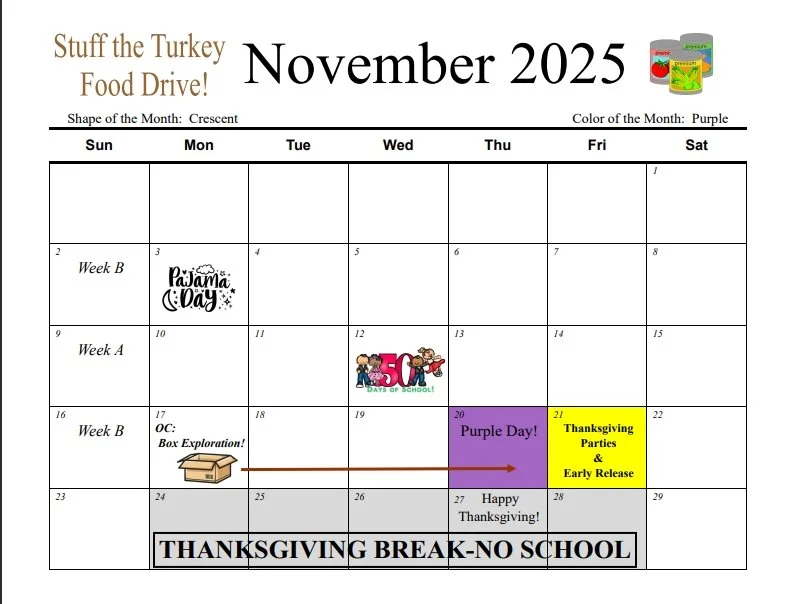 November 21st - Parties & Early Release @ 1:30pm